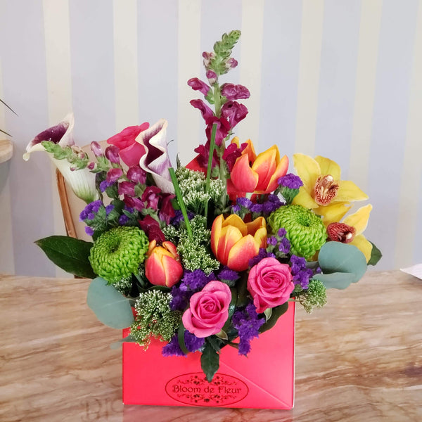 These original arrangements have been designed exclusively by Bloom de Fleur. All of our flowers are guaranteed fresh upon pickup or delivery.